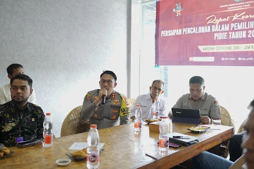 Dalam dapat koordinasi persiapan pencalonan yang dilaksanakan KIP di Awesome Caffee Sigli, hadir pihak Polres Pidie, Kejaksaan Negeri Pidie, Disdukcapil, Dinas Pendidikan, Kementerian Agama Pidie, Kesbangpol, pengadilan Panwaslih dan sejumlah instansi lainnya.